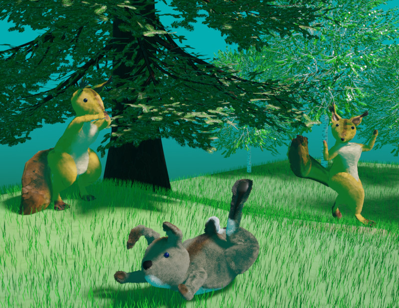 Шишка вышла к месту прыжка. Она очень волновалась, ведь на неё смотрели звери со всего леса. Чтобы долго не бояться белочка присела, изо всех сил оттолкнулась и прыгнула. Получилось ни высоко, ни низко, как обычно, на треть высоты до ближайшей ветки.