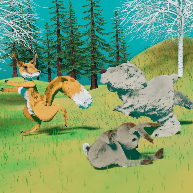 Заяц прибавил шагу, чтобы не слышать своего друга. Мысли буквально кипели в его голове. Почему это он должен кому-то помогать? Нет, Заяц готов был помочь друзьям или просто знакомым, но этот зверь такой лохматый и страшный. Кто знает, что у него на уме? Погрузившись в тяжелые мысли, Заяц даже не заметил, что кто-то бежит за ним следом. Наконец, он услышал чьё-то тяжелое дыхание. Косой резко развернулся, но никого не увидел. Всё было тихо и спокойно. «Померещилось,» — подумал Заяц и повернул, было, к дому, но тут же остолбенел от страха; перед ним стояла молодая рыжая Лиса.