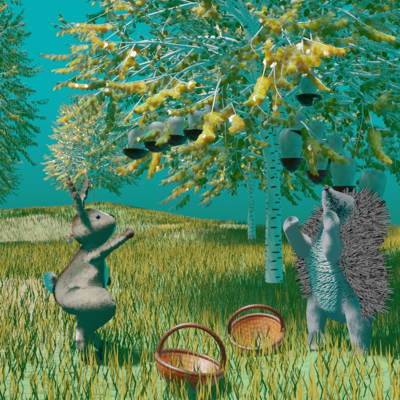 Ёжик только пожал плечами и продолжил ворошить листья вдоль тропинки. Заяц же стал рассматривать ветви ближайших деревьев.
