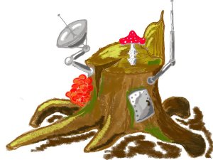 Держа кота на руках, девочка подошла к пеньку. Это был большой старый пень, поросший мхом и грибами. Могучие его корни, извиваясь, уходили в землю. Люба взобралась на пенёк и села посередине. И тут ей показалось, что пень как-то прогнулся под ней. Девочка осмотрелась. Действительно, пенёк изменил форму и теперь Люба сидела не на гладкой поверхности, а как бы в удобном кресле с подлокотниками.