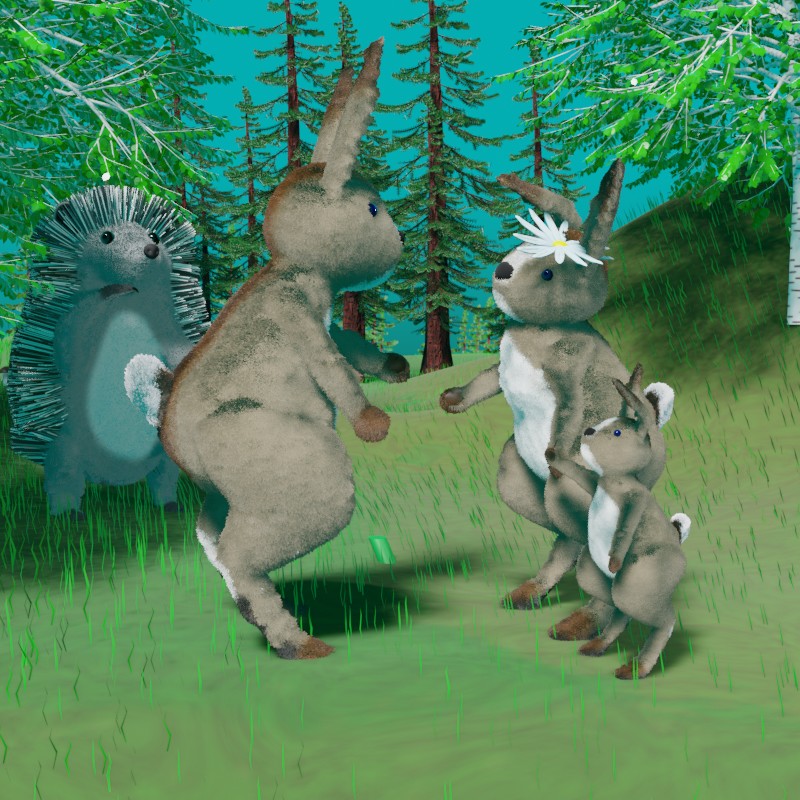 — Мама, мама! — и пустился навстречу пожилой зайчихе, которая с двумя другими зайцами искала кого-то в густой траве.