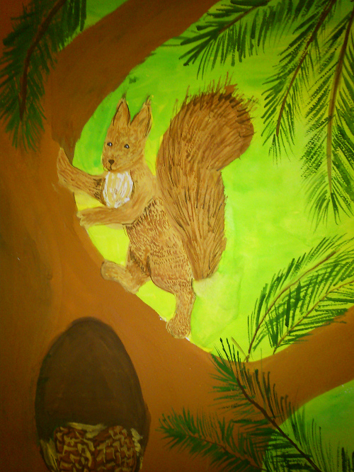 А тем временем Белка вернулась домой с добычей. Они принесла большую корзину шишек. Сначала она заскочила к бельчатам, посмотреть, как у них идет работа. Бельчата как-то невесело встретили свою маму, что она сразу заметила: