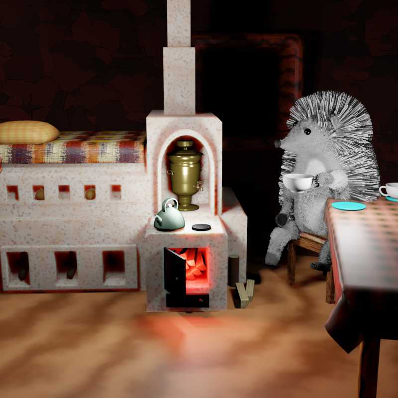 А Ёжик принялся за работу, и в скором времени печка была готова. Он сделал её не большой и не маленькой, с нишей, куда можно ставить самовар, с плитками, где можно греть еду, и не очень большой топкой, ведь больших кастрюль и чугунков у него не было. Печка уютно разместилась в углу кухни и не занимала много места. От неё было тепло и уютно. Ещё Ёжик сделал в печке много ниш для сушки варежек и шарфов. Ему, конечно, не нужно было столько, но он сделал их для зайцев, чтобы они могли сушить свои вещи у него, если у них дома вдруг не хватит места.