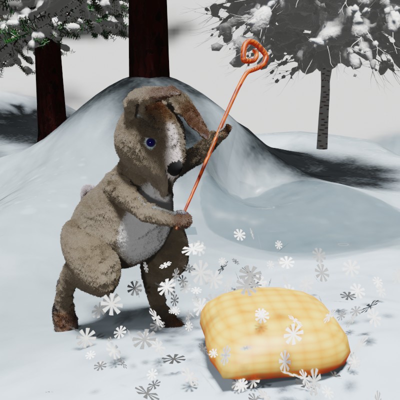 Дело оказалось нелёгким. Снега давно не было, и тот, что лежал кругом, давно превратился в жесткую неподатливую корку. А мороз всё крепчал и крепчал, и уже не только задние, но и передние лапы начали коченеть, но друзья не уходили. Они скатали большущий ком и вкатили его на гору. Они разрыли отверстие побольше, чтобы ком пролез в него.