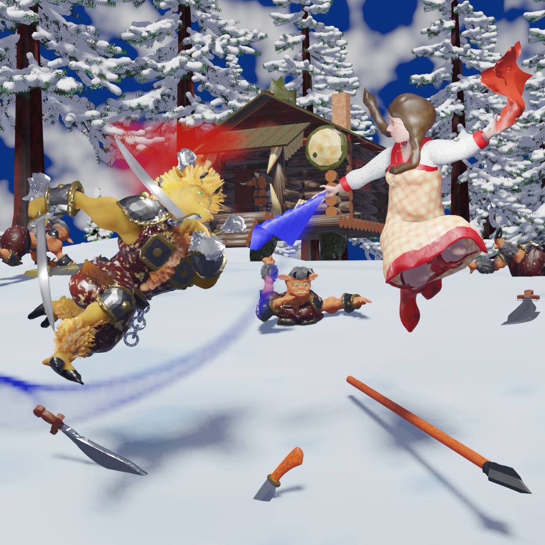 Бугай и Буян, только и ждавшие команды, бросились на ведьму с разных сторон. Оказывается, у них было ещё по десятку свежих воинов в засаде. Яга, разумеется, махнула синим платком, отбрасывая одну группу в сторону, но вторая накинулась и повалила её. Тут же подоспели и другие.