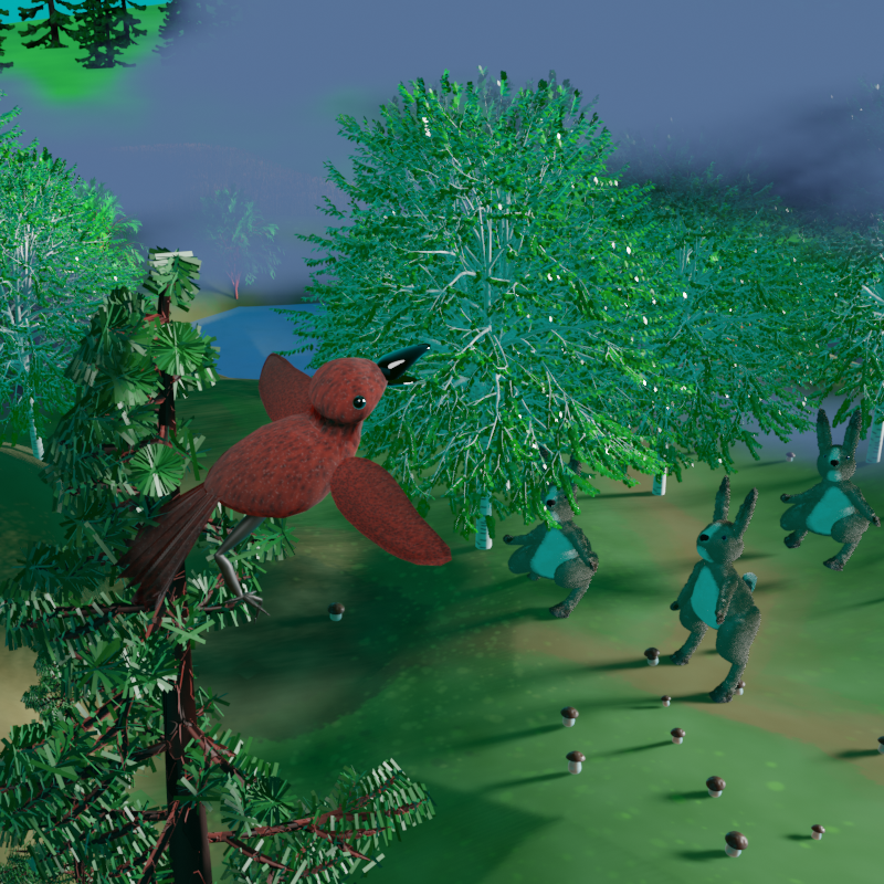 Недоумевающий соловей полетел за Зайкой. Они выбрались из кустарника на полянку.