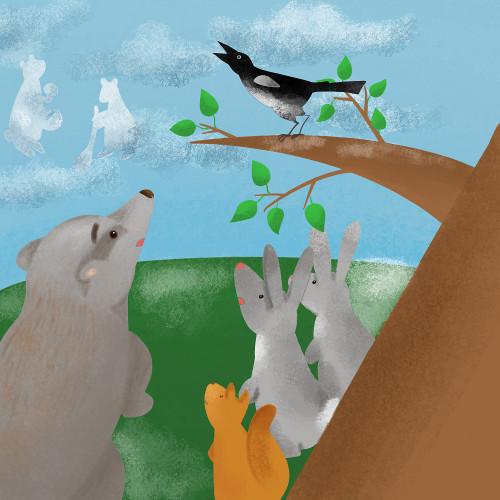 Зверушки, было, бросились бежать, но Сорока снова защебетала.