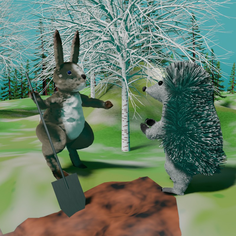 — Привет, Ёжик, — обрадовался Заяц другу, — как здорово, что ты зашёл. Не мог бы ты сгрести граблями сухую траву? А то рабочих рук уже не хватает.