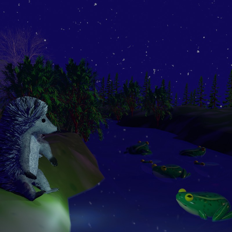 Уже ложась в кроватку, Ёжик подумал, хорошо, что это не чудо-птица какая-то поёт, а простые лягушки. Ведь птицы не всегда прилетают на болото, а лягушки живут тут круглый год. Правда, так красиво они поют только весной. Под мелодичные трели Ёжик заснул и ему снились чудо-лягушки, летающие вокруг его домика и поющие свою необычную песню.