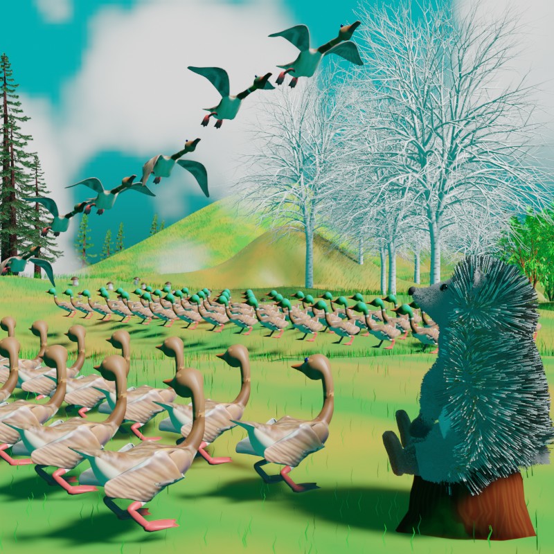 — Привет, Ёжик, — поздоровалась она, — слыхал новость? У уток новый вожак стаи.
